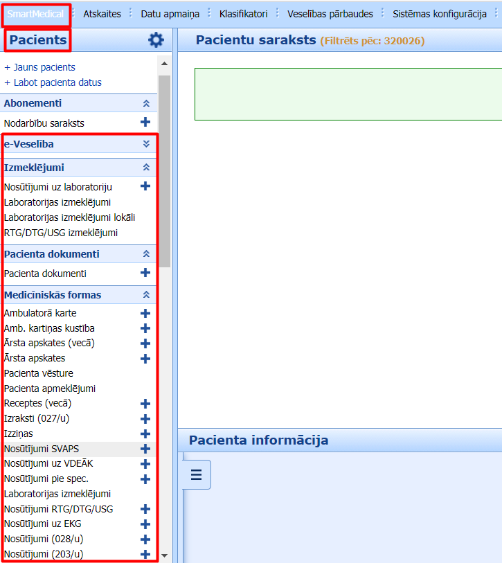 Medicīniskās veidlapas sadaļā “Pacients”