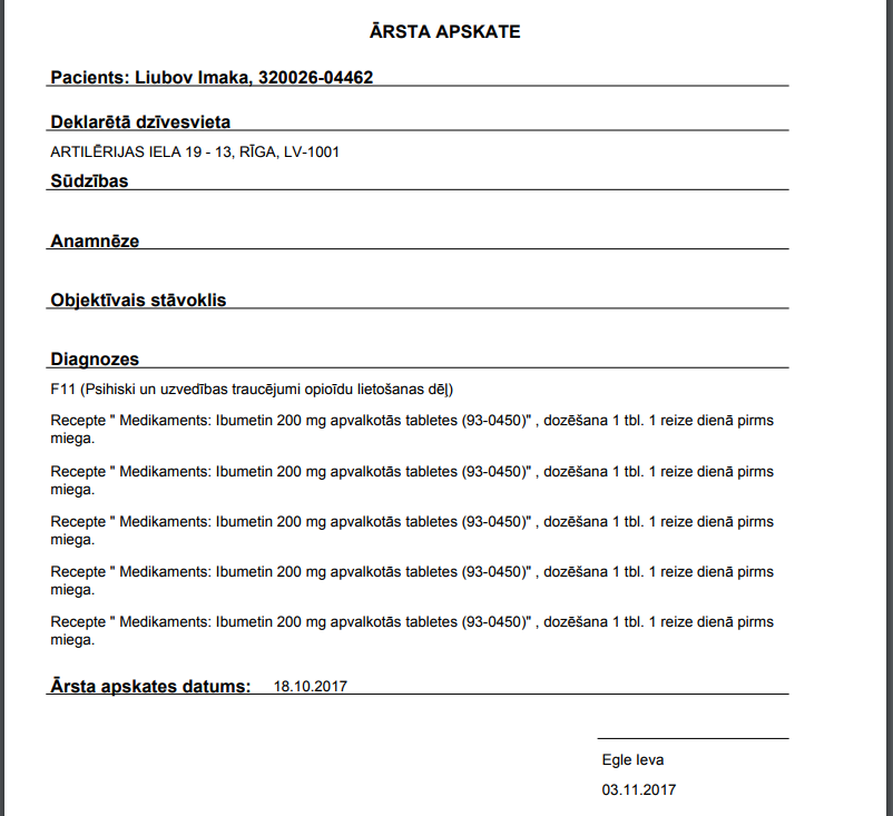 Informācija par pacientam izrakstītajām darbnespējas lapām un receptēm