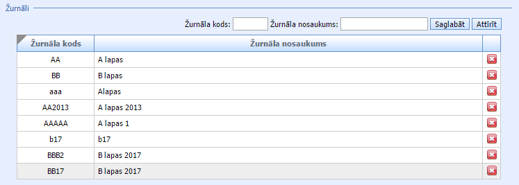 Klikšķinot pogu “Saglabāt”, žurnālu sarakstā tiek attēlots jaunā žurnāla ieraksts: