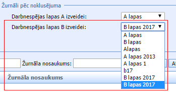 Sekcijā “Žurnāli pēc noklusējuma” ir 2 iestatījumi – iespēja izvēlēties, kuru žurnālu attēlot darbnespējas lapas (A un B) formā pēc noklusējuma: