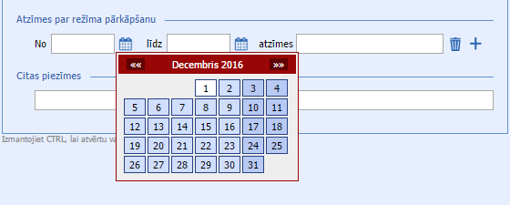 , atveras kalendārs, kur ar kursoru izvēlas konkrētu datumu. Klikšķinot ikonu vēlreiz, kalendārs tiek savērsts.