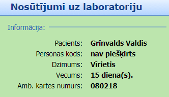 Piezīme: Pie atšķirīga veida iestatīšanas Personas koda laukā var tikt attēlots arī SM pacienta identifikators (skaitliska vērtība).