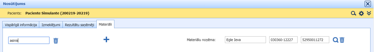Nosūtījuma formas lapiņā “Materiāls” norāda ārstniecības personu, kas veica materiāla noņemšanu (izvēle no klasifikatora):