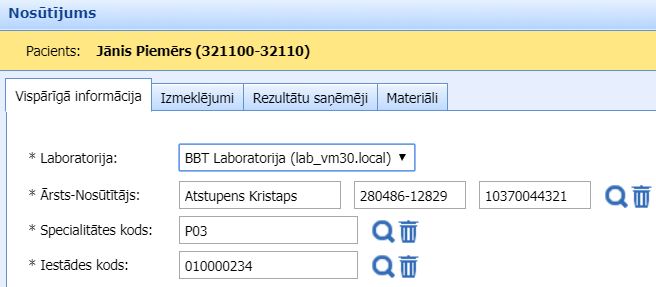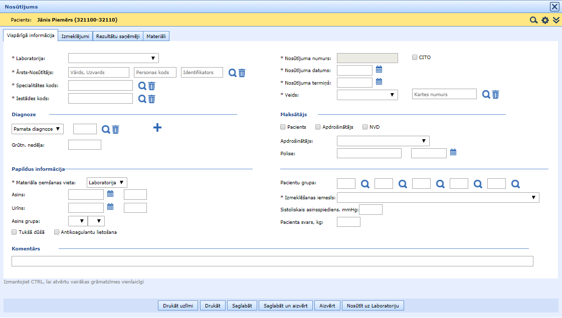 Nosūtījums uz laboratoriju ar iespēju piesaistīt stacionāra kartei