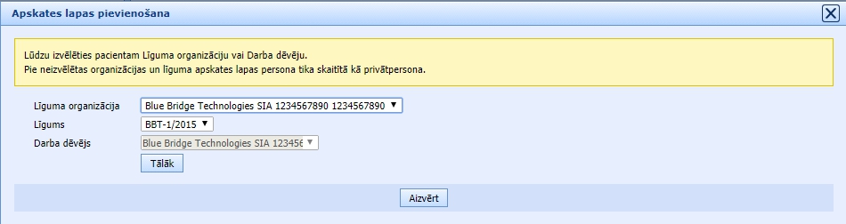 Ja Darba devējs ir arī līgumorganizācija, tad lauks “Darba devējs” tiek aizpildīts automātiski: