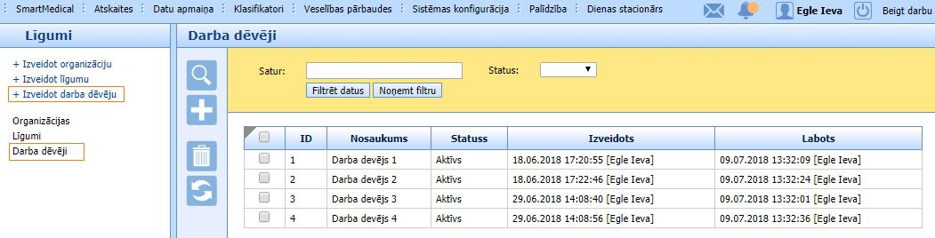 , sānu izvēlnē var papildināt Darba devēju sarakstu: