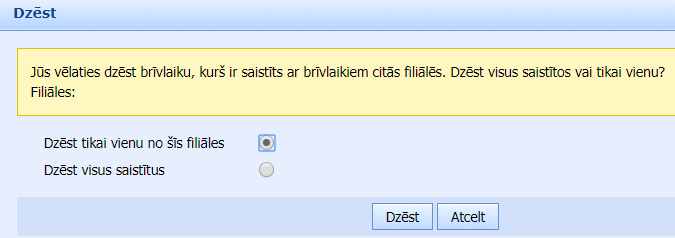 . Pēc apstiprinājuma (ja iestādei ir vairākas filiāles, lietotājs norāda vēlamo opciju) izvēlētais periods tiks dzēsts.