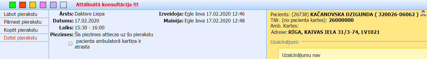 • Klikšķinot pogu „Dzēst pierakstu” un apstiprinot dzēšanas darbību, izvēlētais pieraksts tiek dzēsts no pierakstu plāna.