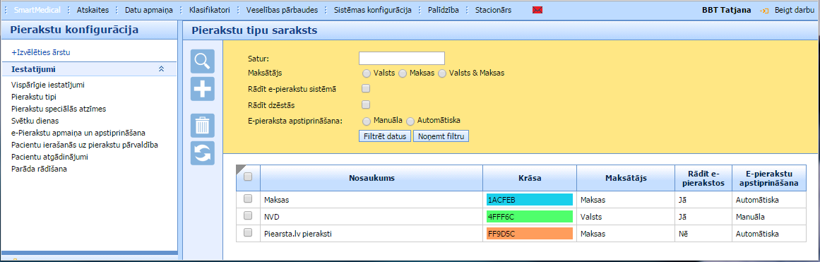 - manuāli, t.i. no portāla SmartMedical sistēmā saņemtie pierakstu pieteikumi būs jāpārvalda un manuāli jāapstiprina sadaļā