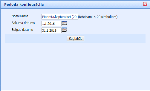 Sadaļā Sistēmas konfigurācija > Pierakstu konfigurācija > Pierakstu tipi izveido jaunu pierakstu tipu, piemēram, “PieArsta.lv” vai tml., klikšķina pogu