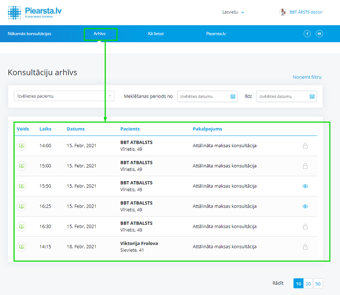Sadaļā “Arhīvs” ir iespējams apskatīt paveiktas konsultācijas.