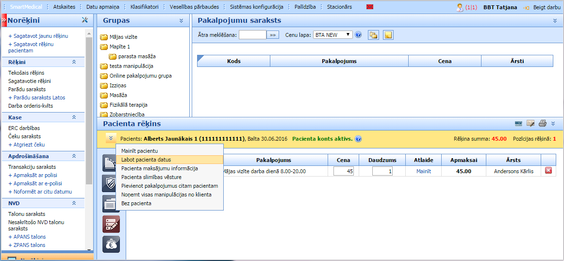 un izvēlam sadaļu “Labot pacienta datus”: