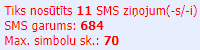 Vienā īsziņā var būt ne vairāk kā 70 simboli. Ja teksts ir garāks, programma sadala tekstu vairākās īsziņās.Lūdzu sekojiet līdzi īsziņu garuma skaitītāja informācijai sarkanā krāsā formas labajā pusē!