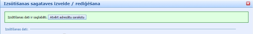 Pēc sagataves saglabāšanas tiek attēlots paziņojums par to, ka dati saglabāti, un poga “Atvērt adresātu sarakstu“,
