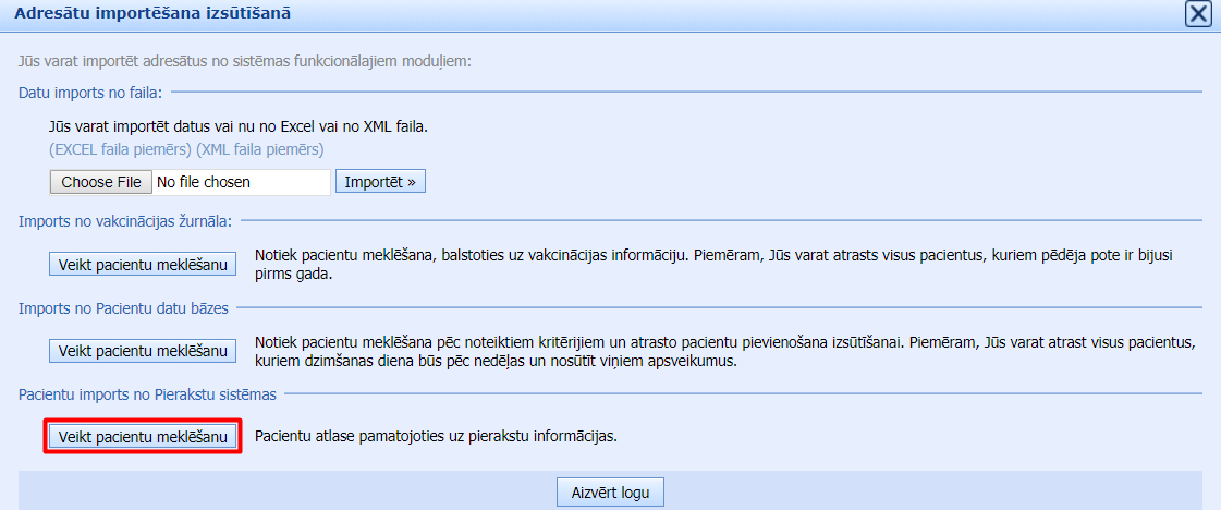 Ja nepieciešams, norāda citu datumu pacientu meklēšanai un klikšķina pogu “Filtrēt datus”.Kad klientu saraksts ar tālruņiem ir importēts, klikšķina pogu “Nosūtīt ziņojumus“.