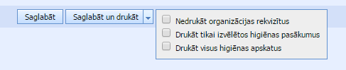 Ievadītu informāciju saglabājam, spiežot pogu “Saglabāt” vai “Saglabāt un drukāt”. Drukājot sistēma piedāvā, izvēlēties opcijas: