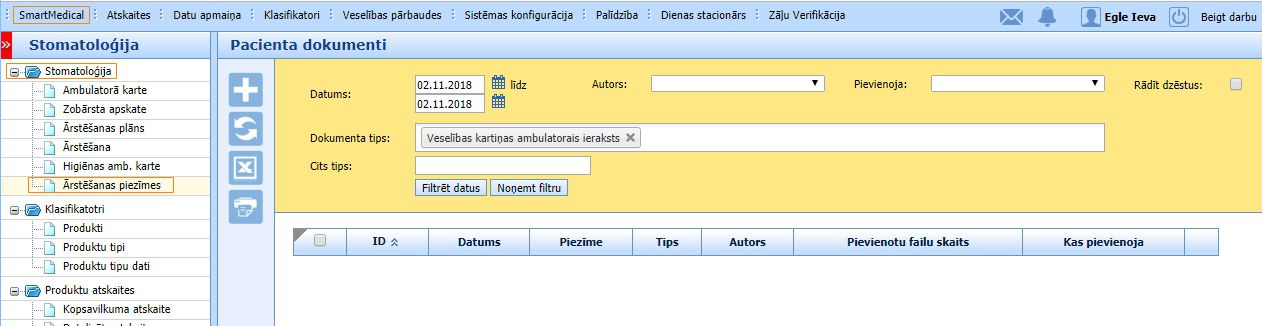 Tagad zobārstam ir iespēja veikt ārstēšanas piezīmes un glabāt pacienta dokumentus jaunajā sadaļā “SmartMedical > Stomatoloģija > Ārstēšanas piezīmes”:
