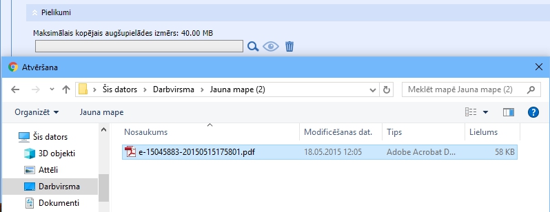Laukā “Pielikumi”var pievienot 5 failus: