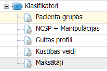 Klikšķinot uz jebkura zara, atveras konkrētais klasifikators ar tā vērtību sarakstu un filtru konkrētu ierakstu atlasīšanai pēc lietotāja definēta kritērija.