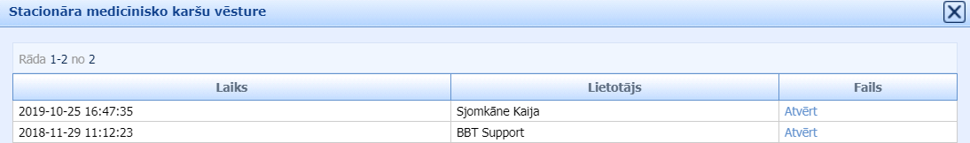 Ja dokuments izveidots, tiek attēlots tā pēdējās versijas izveidošanas datums. Lai dokumentu atvērtu, klikšķina uz sarkanās ikonas.Iespējams attēlot arī visu noteikta veida dokumentu sarakstu, klikšķinot pogu “Vēsture“.Izvēlēto dokumenta versiju atver, klikšķinot “Atvērt”.