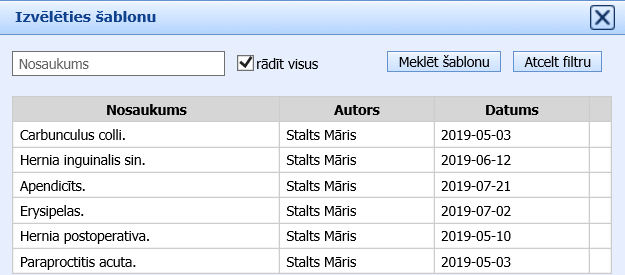 Lai izmantotu ne tikai paša lietotāja veidotus šablonus, ieķeksē izvēles rūtiņu “rādīt visus” un klikšķina pogu “Meklēt šablonu“:
