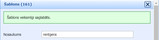 Lai kādā Izraksta-epikrīzes laukā ievadītu informāciju saglabātu kā šablonu, klikšķina uz disketes ikonas un saglabā šablonu ar lietotāja izvēlētu nosaukumu.