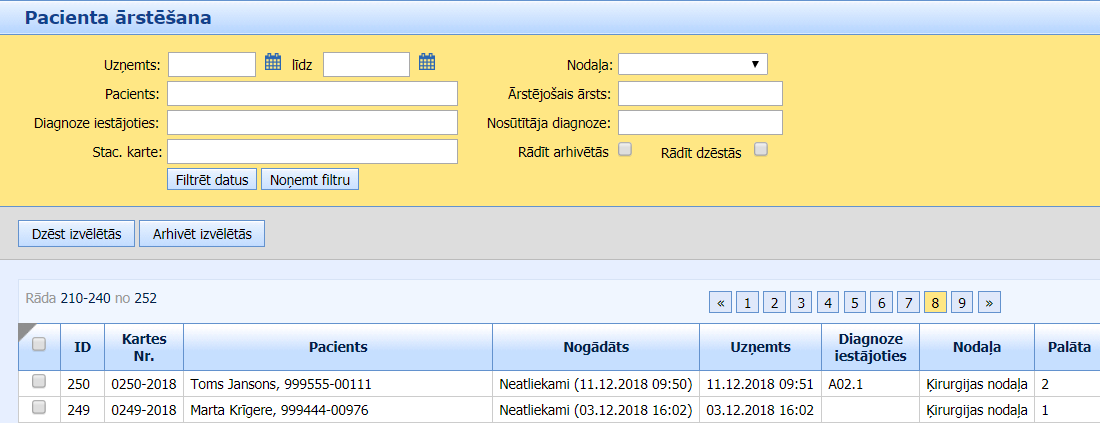 Pacients Smart Medical sistēmā būs atrodams sarakstā “Ārstēšana stacionārā”: