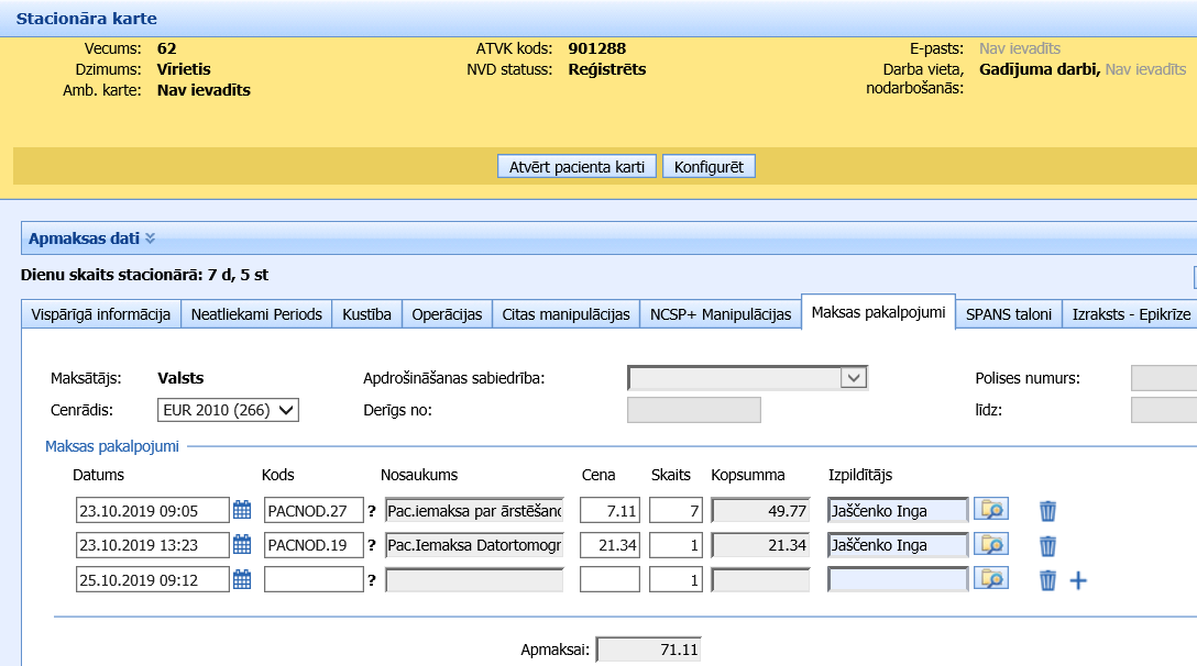 Maksas pakalpojumu lapiņā papildus tiek attēloti dati par pacienta polisi, kurus ņem vērā, sastādot pacientam rēķinu. Kā arī ir iespējams norādīt cenrādi, kuru izmanto konkrēta apdrošināšanas kompānija.