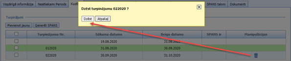 Ja irnepieciešams labot pēdējo SPANS talonu (piemērā – turpinājums 022020), jāizdzēšpēdējā kustība (31), jāizlabo talons,jāģenerē jauns SPANS talons un jānosūta uz NVD.